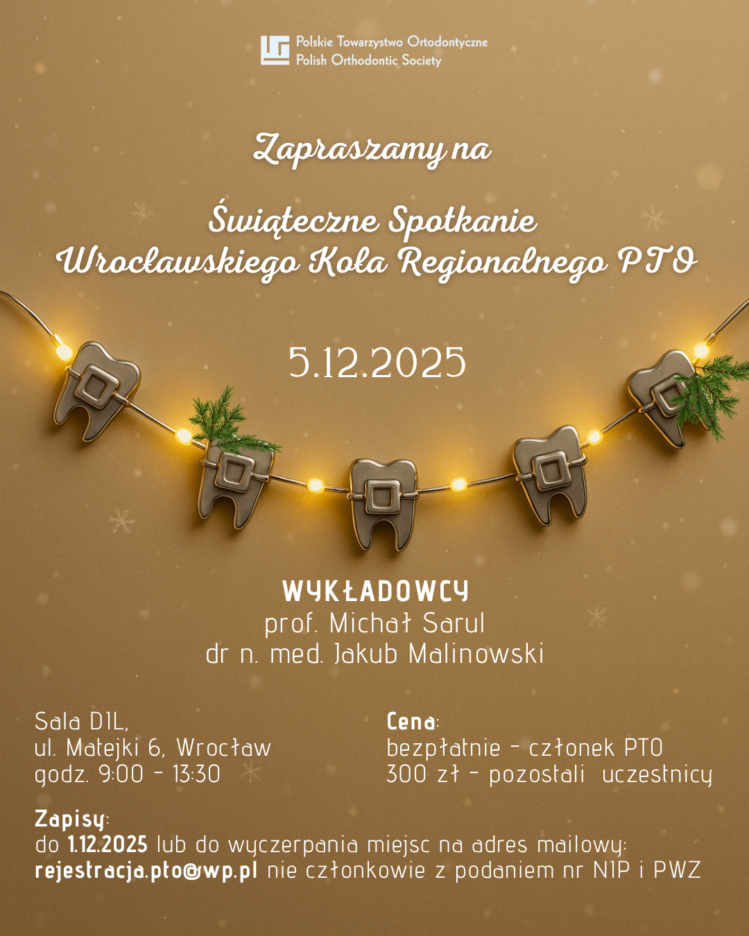 Serdecznie zapraszamy na spotkanie w świątecznej atmosferze, połączone z porcją najnowszej wiedzy ortodontycznej i okazją do wspólnego spędzenia czasu w gronie Koleżanek i Kolegów.